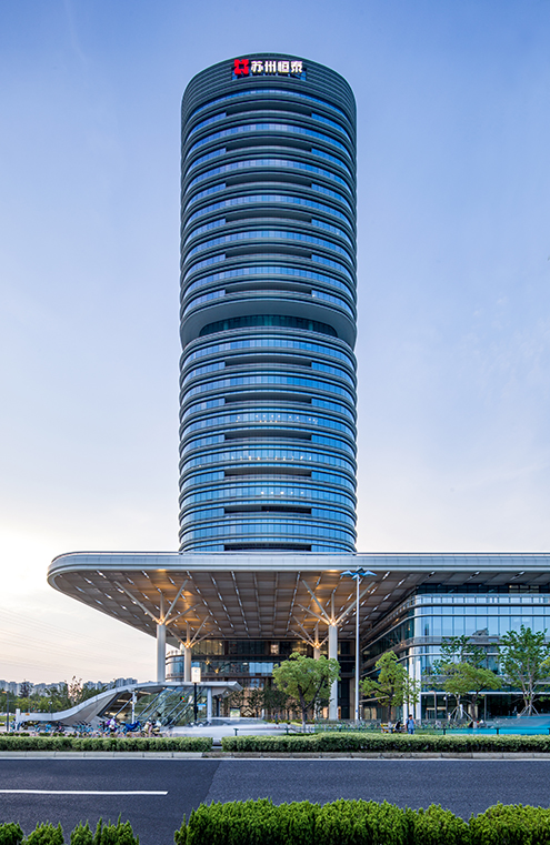 設計融合了傳統與現代,實現了“真正的可持續性”,并通過建筑形態及室內外空間充分表達這些價值。將南宋平江圖中存在于蘇州這座古城近千年的城市脈絡和公共空間特征:河道、園林和公共空間網絡,帶入到這座未來的地標建筑中。