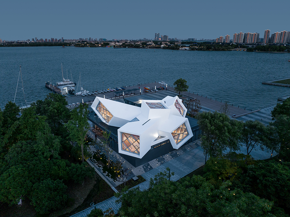 風之園驛站位于金雞湖西側風之園碼頭旁,是一座集綜合服務與休閑功能于一體的建筑,建筑面積為755.77㎡。項目主要為環湖游客提供休憩場所及各項配套服務,同時服務于碼頭舉辦的水上運動活動,連接了帆船碼頭與城市綠地,是區域內不可或缺的綜合性服務設施。
